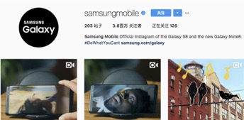 它的Instagram Bio主要写的是今年新推出的Galaxy S8 和 Galaxy Note8,所留链接也是产品的链接。